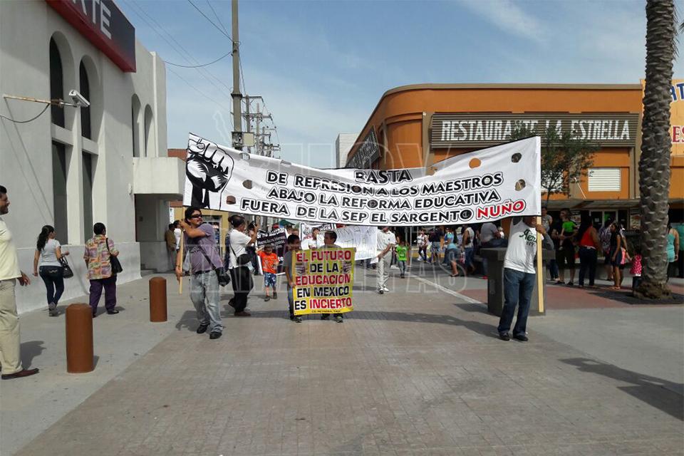 Protestan contra reforma educativa maestros y padres de familia de Reynosa