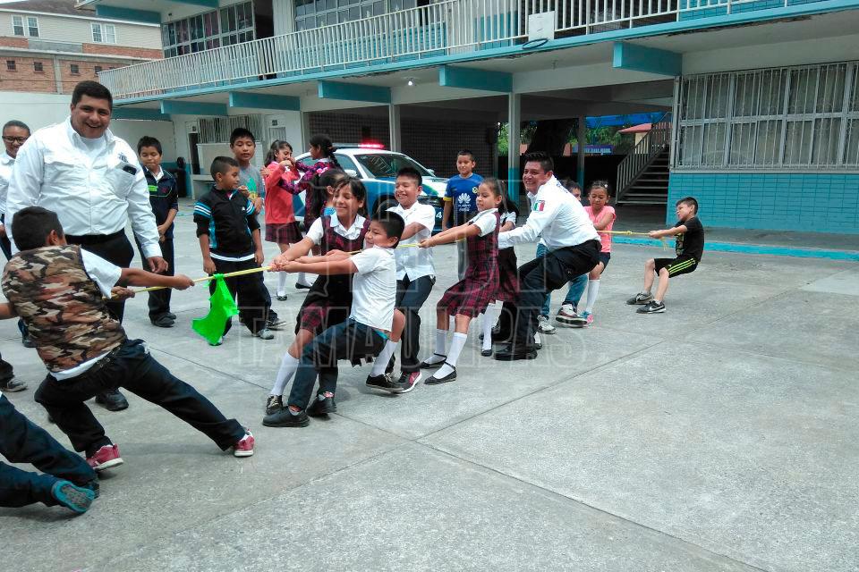 Llevan policías alegría y diversión a alumnos de Primaria en Reynosa