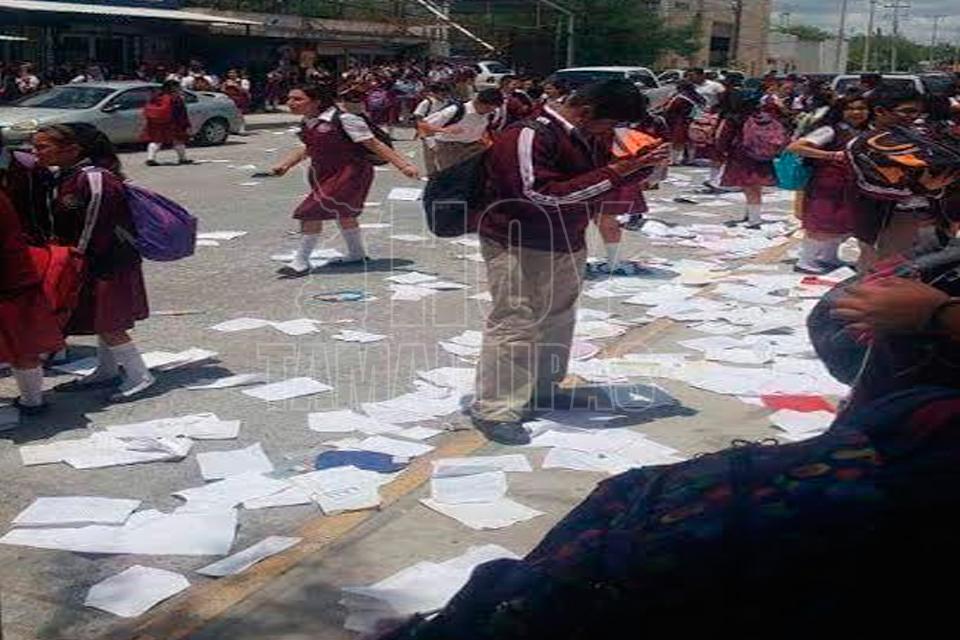 Festejan egresados de Secundaria en Reynosa tirando miles de papeles en la calle