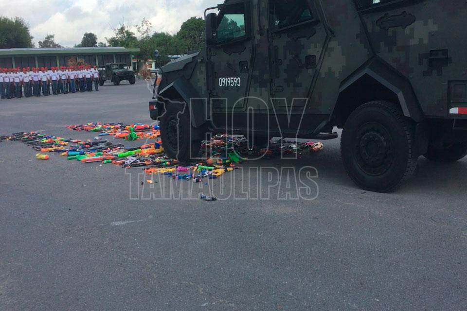 Destruyen más de 700 armas de juguete en Cuartel Militar de Reynosa