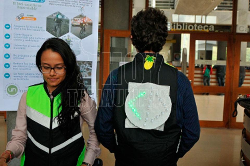 Diseñan chaleco con direccionales led para mejorar seguridad de ciclista