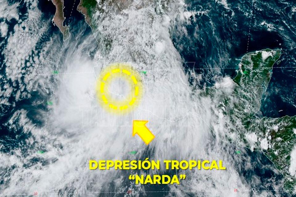 Narda se debilita a depresión tropical; se localiza en Jalisco