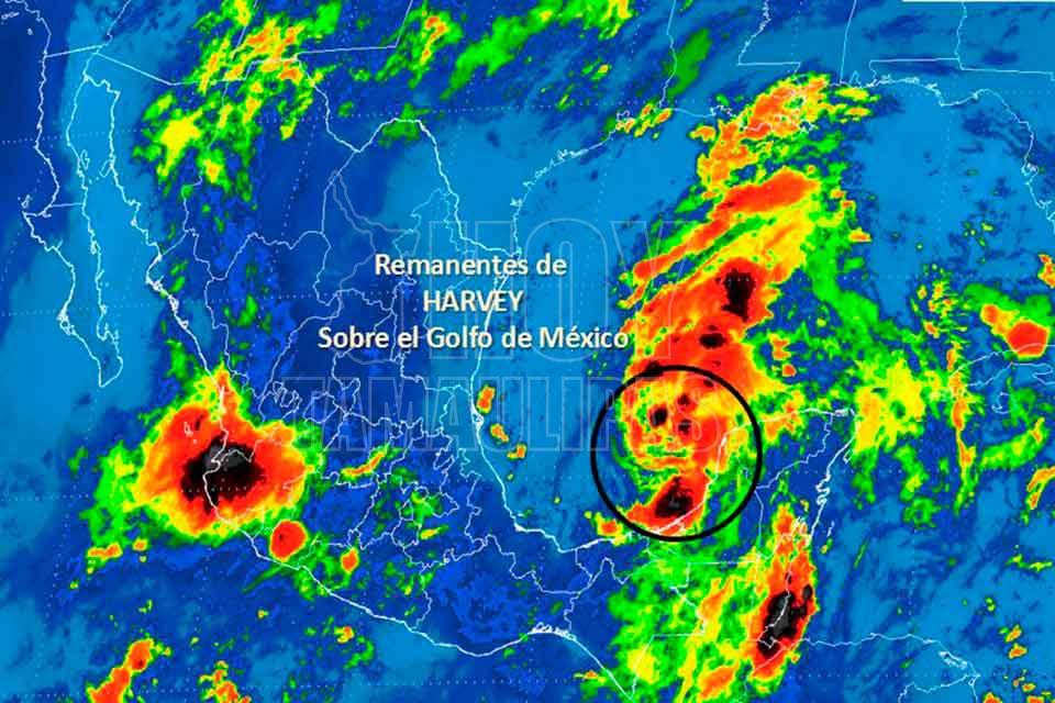 Prevén tormentas intensas en sur y sureste del país por remanente de Harvey
