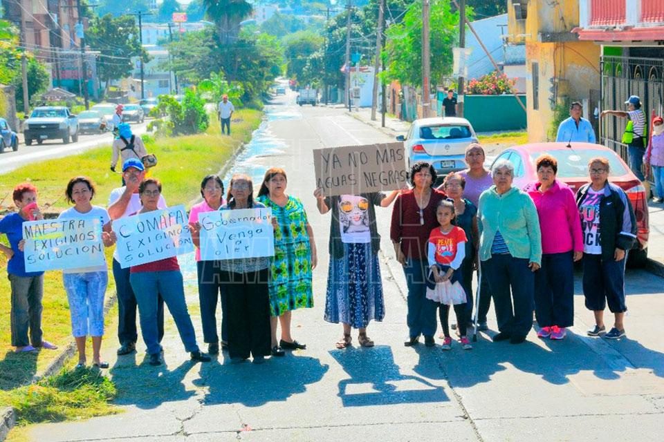 Bloquean vecinos arteria en Tampico por fuga de aguas negras en su sector