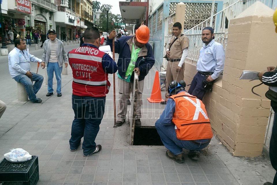 Revisó Protección Civil alcantarillas en centro de Tampico