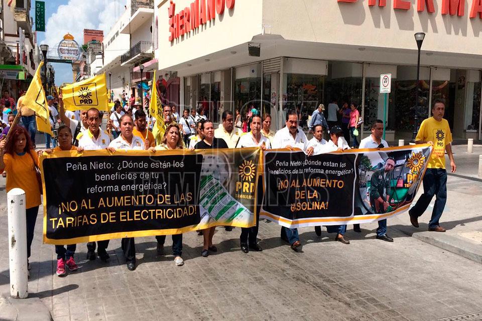Marcha PRD en Tampico por alza de tarifas de CFE