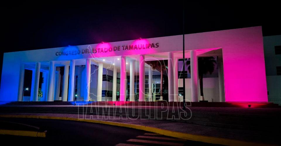 Se ilumina Congreso de Tamaulipas de azul y rosa por la ‘Ola de Luz’
