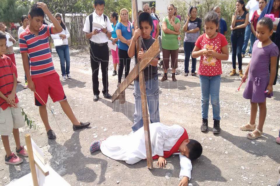 Niño representa a Jesús en el viacrucis en Jaumave, Tamaulipas