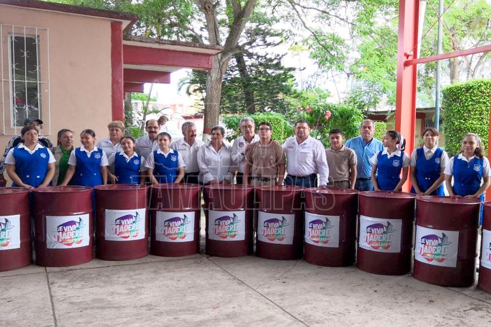 Entrega gobierno de Madero contenedores de basura a plantel escolar