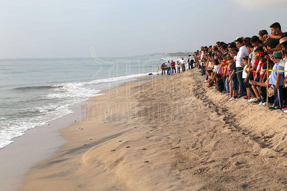 Liberan crías de tortugas Lora en Playa Miramar