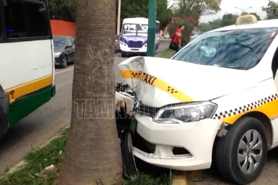Taxista choca contra palmera en Ciudad Victoria