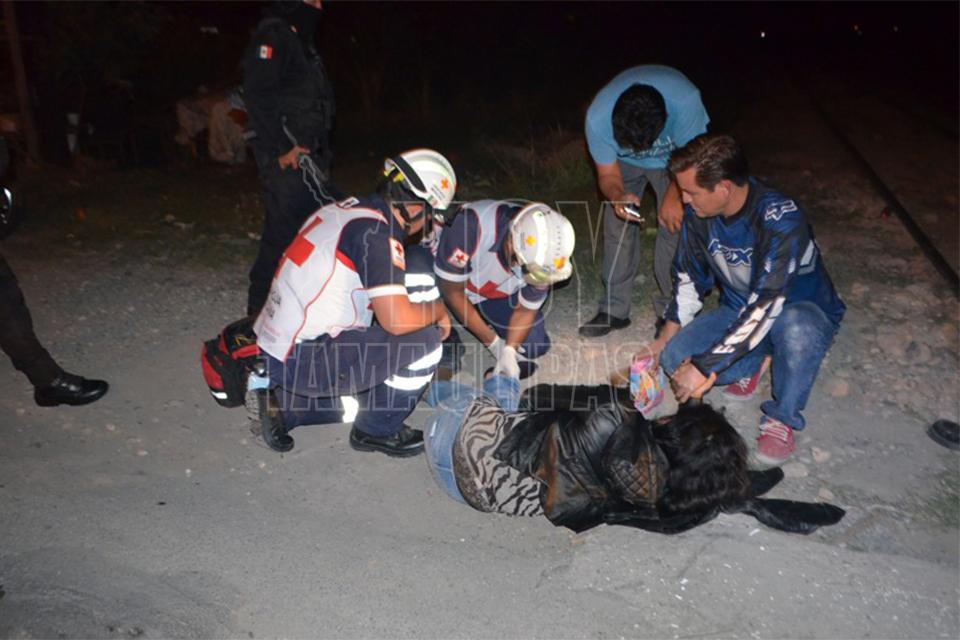 Mujer cae de motocicleta en Ciudad Victoria