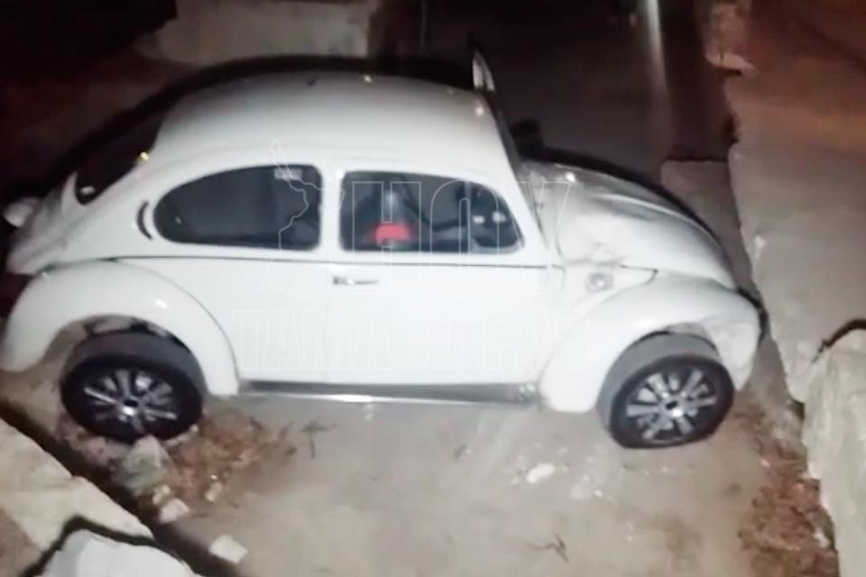 Abandonan “bocho” tras caer a dren pluvial en Ciudad Victoria