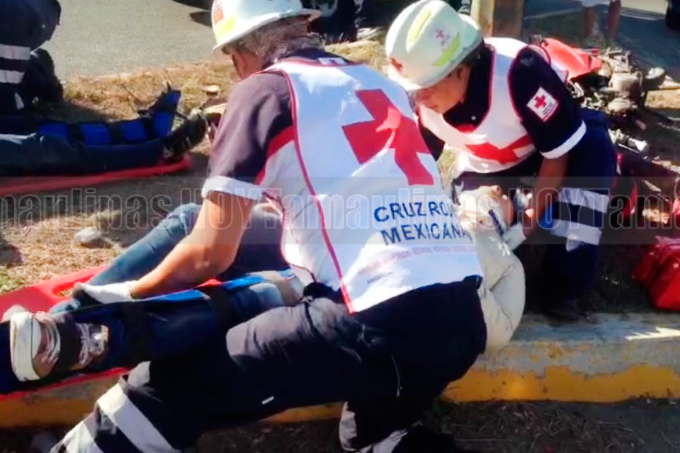 Motociclista choca contra luminaria en Ciudad Victoria; dos lesionados