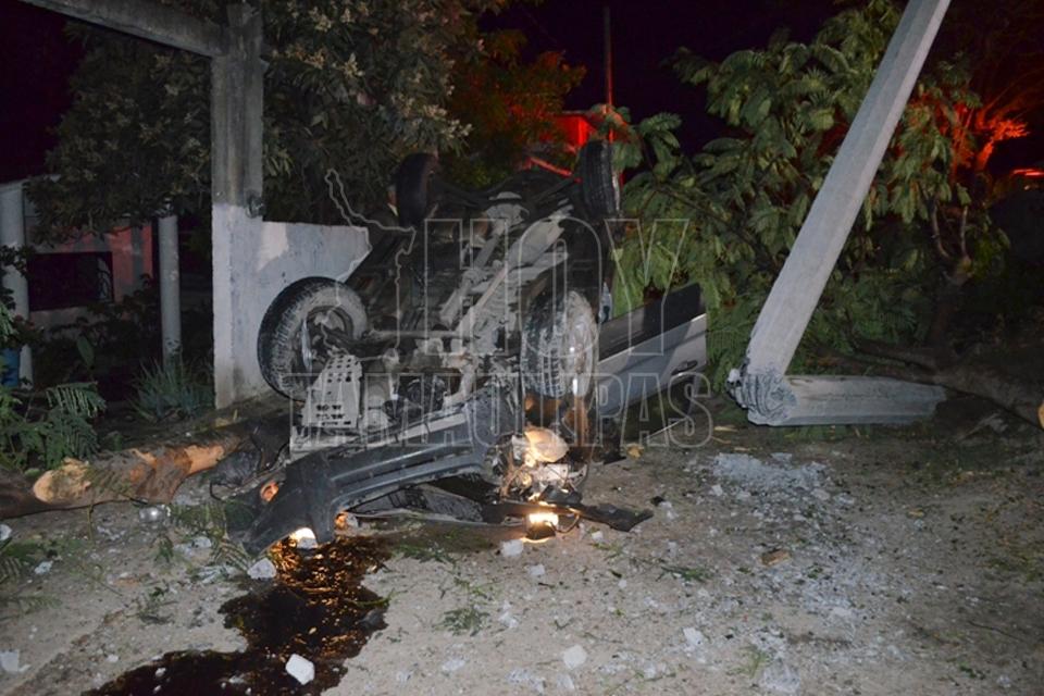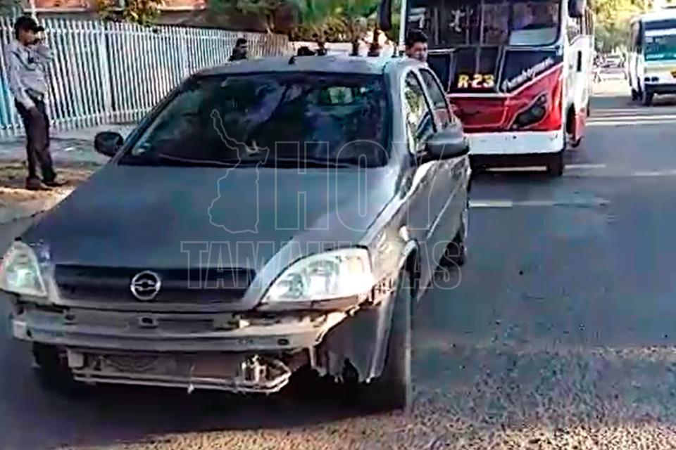 Microbús proyecta auto contra camellón en Ciudad Victoria
