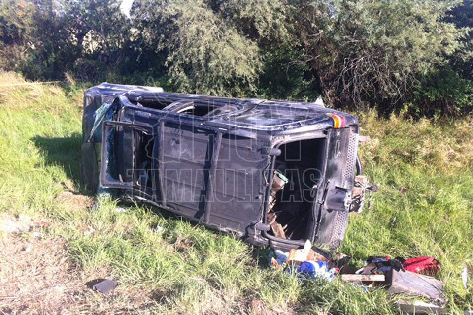 Cinco heridos al volcar camioneta en carretera Victoria-Matamoros