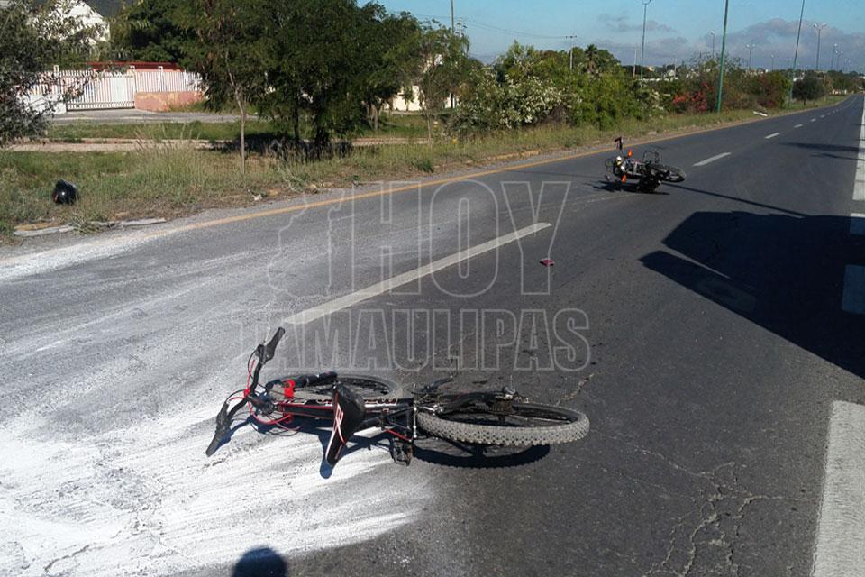 Ciclista derriba a motociclista en Ciudad Victoria