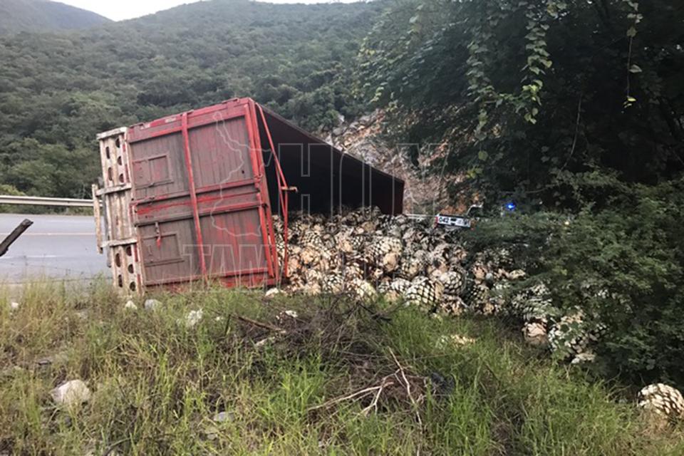 Se vuelca camión cargado con piñas en la Rumbo Nuevo