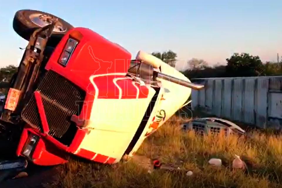 Vuelca tráiler cargado con 25 toneladas de aguacate en la carretera a Soto la Marina