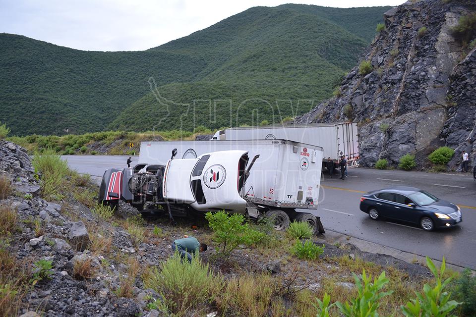 Trailero vuelca en la Rumbo Nuevo al chocar contra vocho