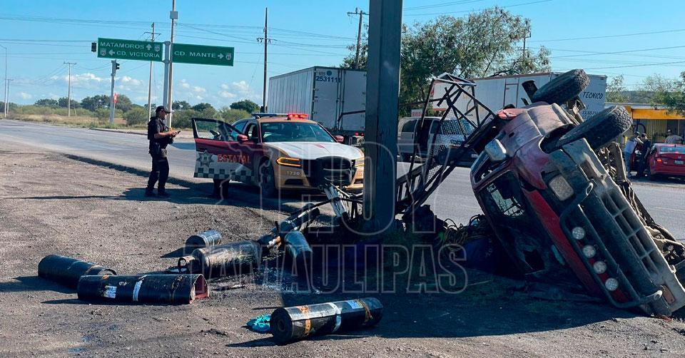 Tres lesionados deja volcadura en entronque de Ciudad Victoria