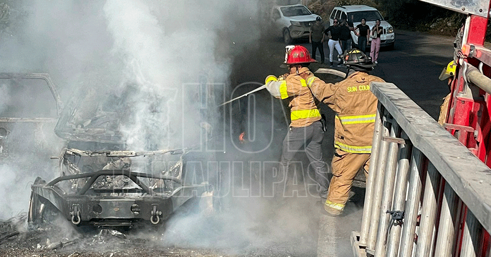 Incendio consume auto todoterreno en Sierra de Ciudad Victoria