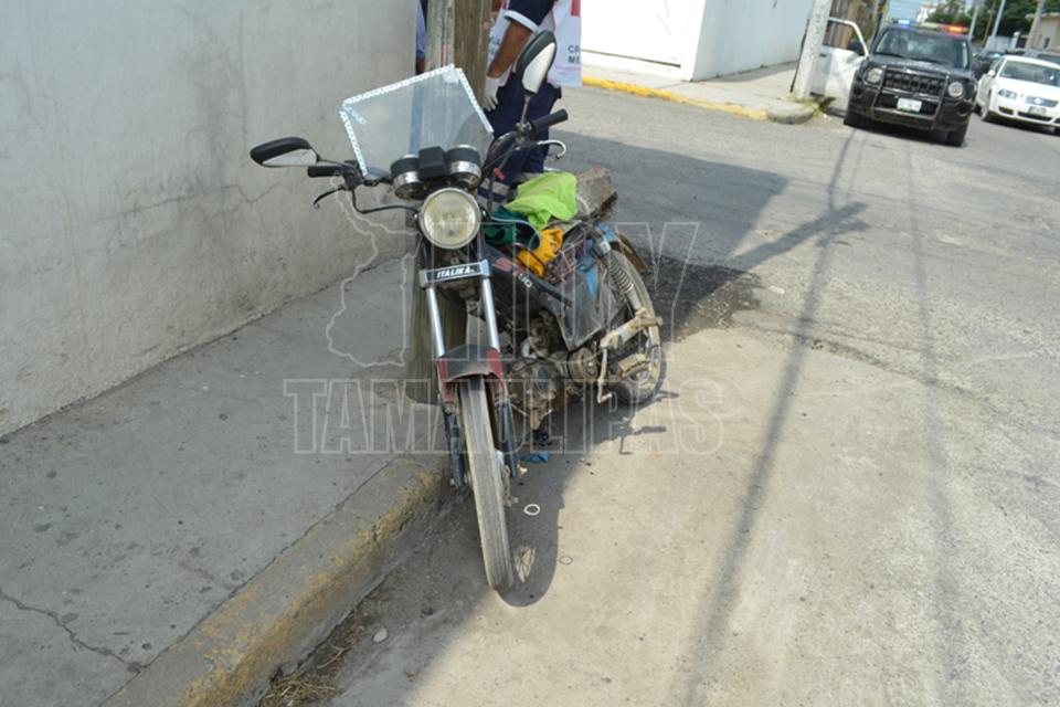 Motociclista se estrella contra auto en Ciudad Victoria