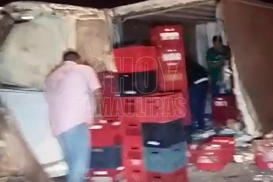 Vuelca camión del Sello Rojo en Ciudad Victoria