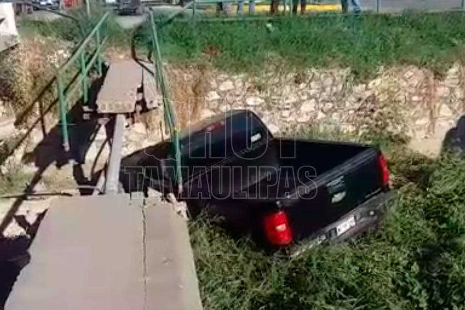 Cae camioneta en dren pluvial de Ciudad Victoria; un lesionado