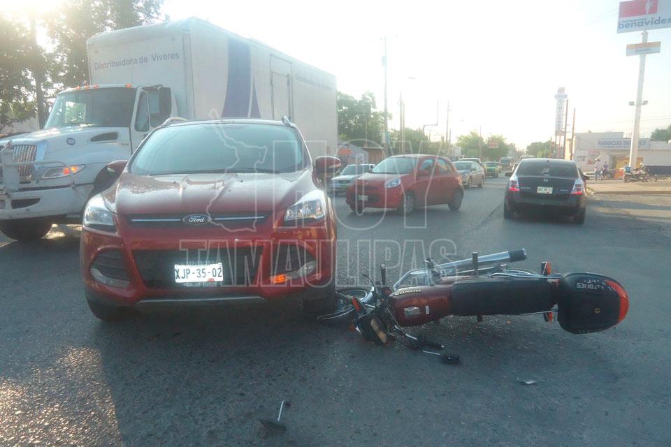 Motociclista se impacta contra camioneta en Ciudad Victoria