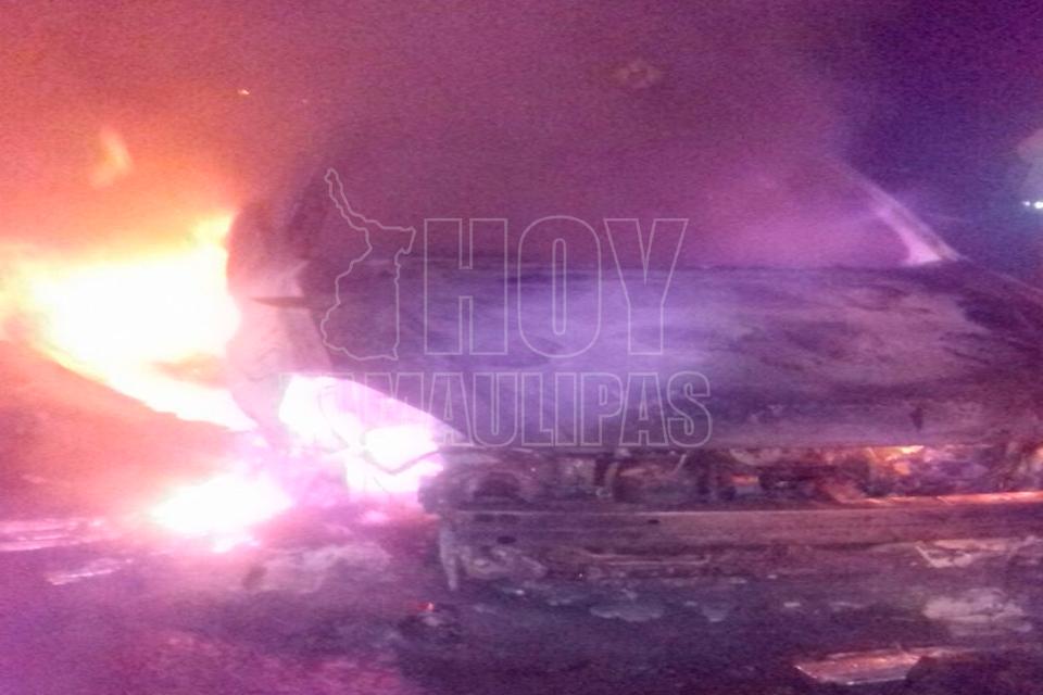 Se incendia carro en la carretera Tampico-Mante y lo dejan abandonado