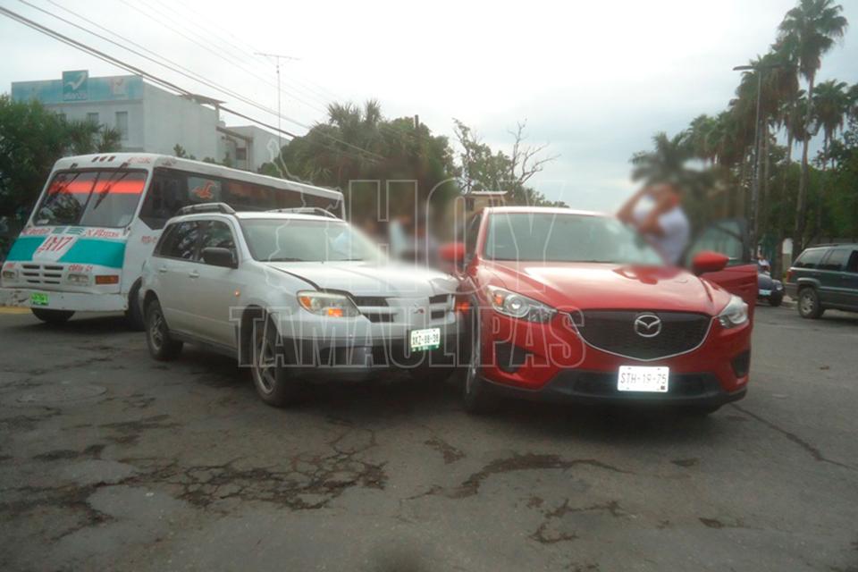 Choque entre micro y auto en Ciudad Victoria deja daños materiales