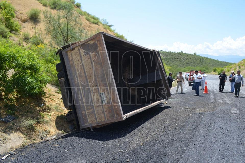 Vuelca camión de carga en la carretera Rumbo Nuevo
