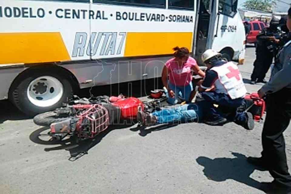 Empleado estampa su motocicleta contra microbús en Ciudad Victoria
