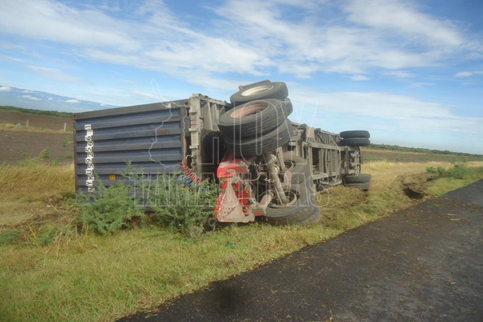 Se desprende contenedor de un tráiler en carretera de Ciudad Victoria