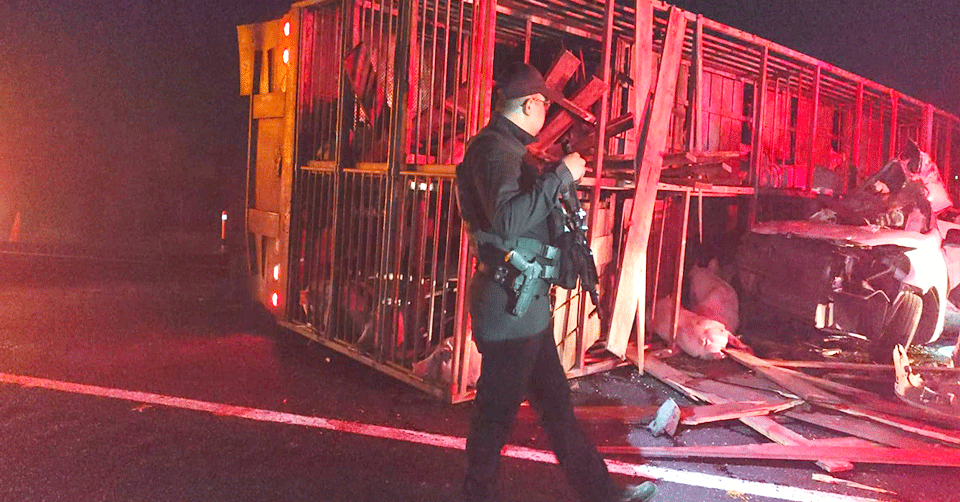 Carambola en la Zaragoza-Victoria dejó un muerto, un herido y rapiña de cerdos