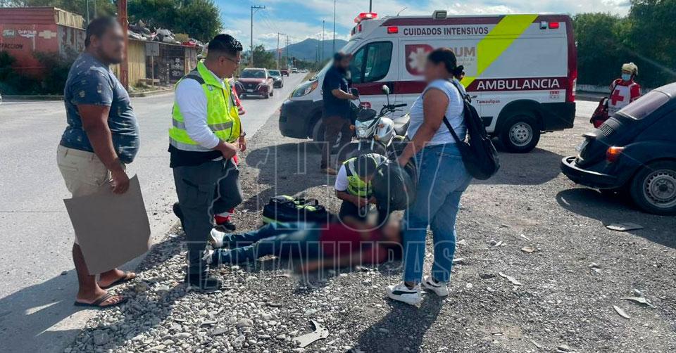 Choque entre vocho y moto dejó dos lesionados en Ciudad Victoria