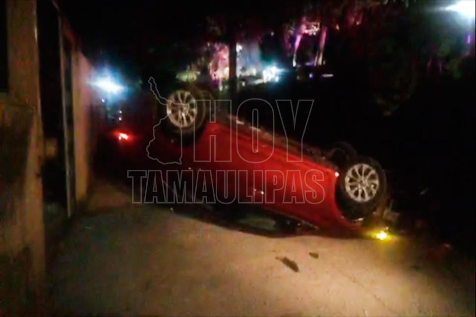 En Ciudad Victoria conductor vuelca al perder el control del volante