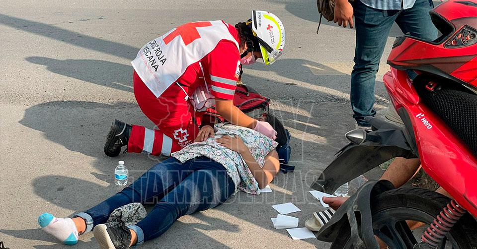 Pareja en moto sufre accidente al pasarse un alto en Ciudad Victoria
