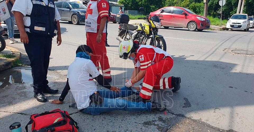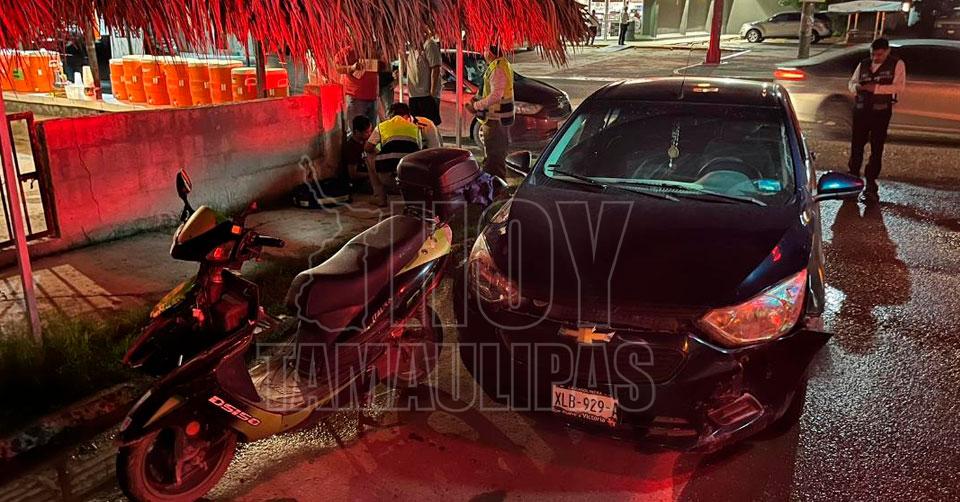 Motociclista se estrella contra auto en Ciudad Victoria y resultó lesionado