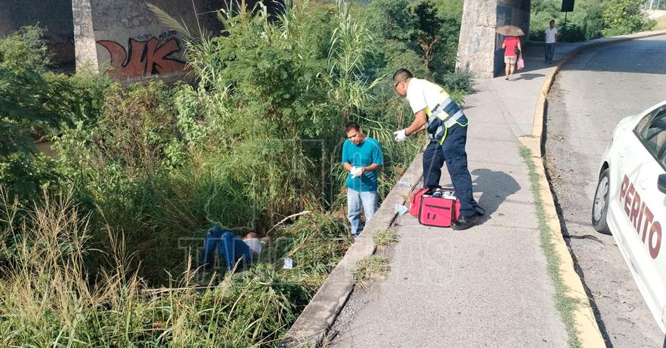 Motociclista derrapa en el “bule” y cae al río San Marcos en Ciudad Victoria
