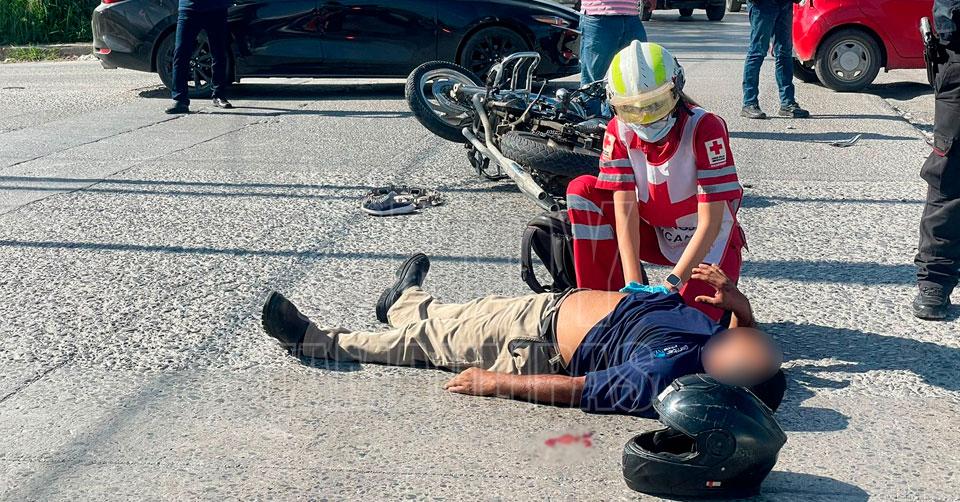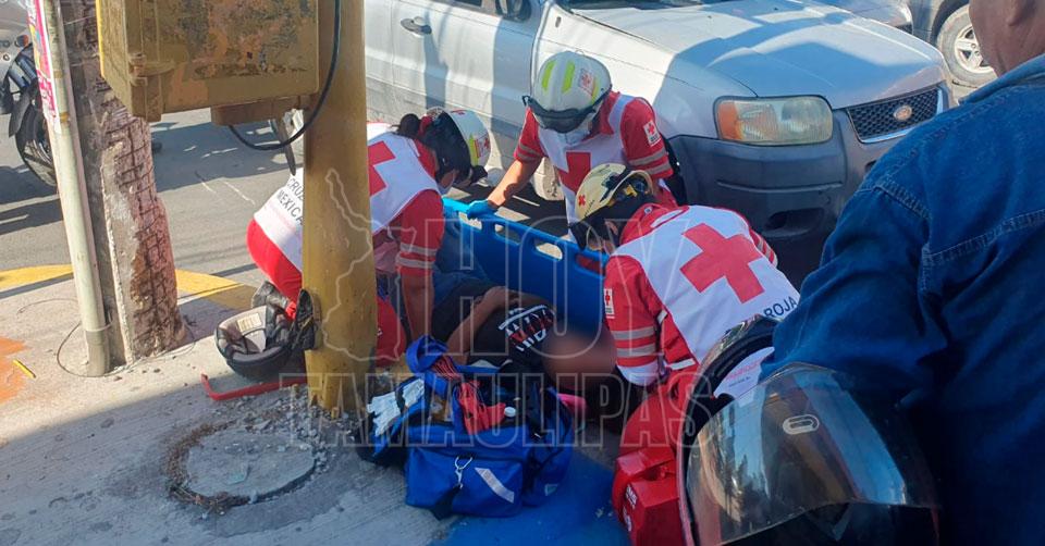 Conductora embiste a motociclista lo manda al IMSS en Ciudad Victoria