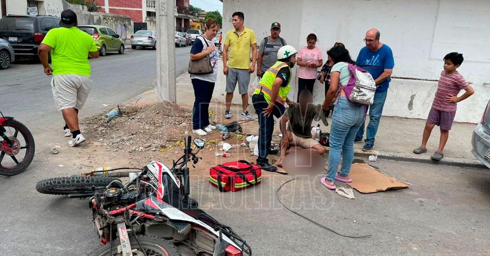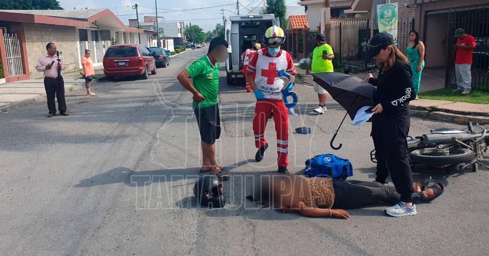 Pareja en moto queda inconsciente tras fuerte choque en el Eje Vial de Ciudad Victoria