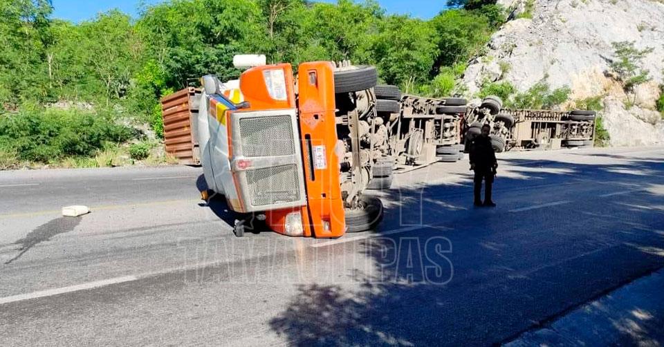 Vuelca tráiler cargado con rollos de papel en la Rumbo Nuevo; circulación obstruida