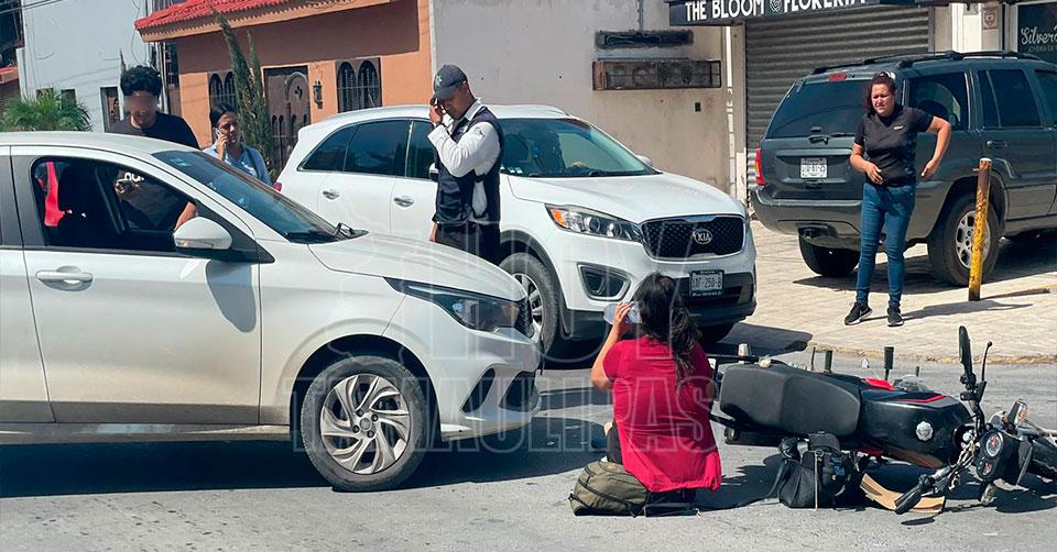 Pareja en moto sufre accidente vial en el centro de Ciudad Victoria