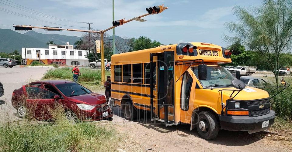 Chocan microbús de iglesia y automóvil en el Eje Vial de Victoria: nadie aceptó la culpa