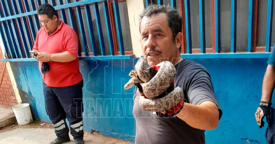 Capturan víbora de cascabel en Primaria de Ciudad Victoria