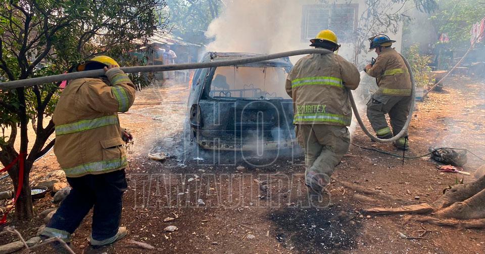Incendio arrasó con camioneta en el patio de una vivienda de Ciudad Victoria