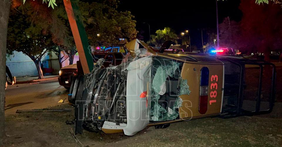 Choca y vuelca patrulla de la Guardia Estatal en Victoria; 2 lesionados