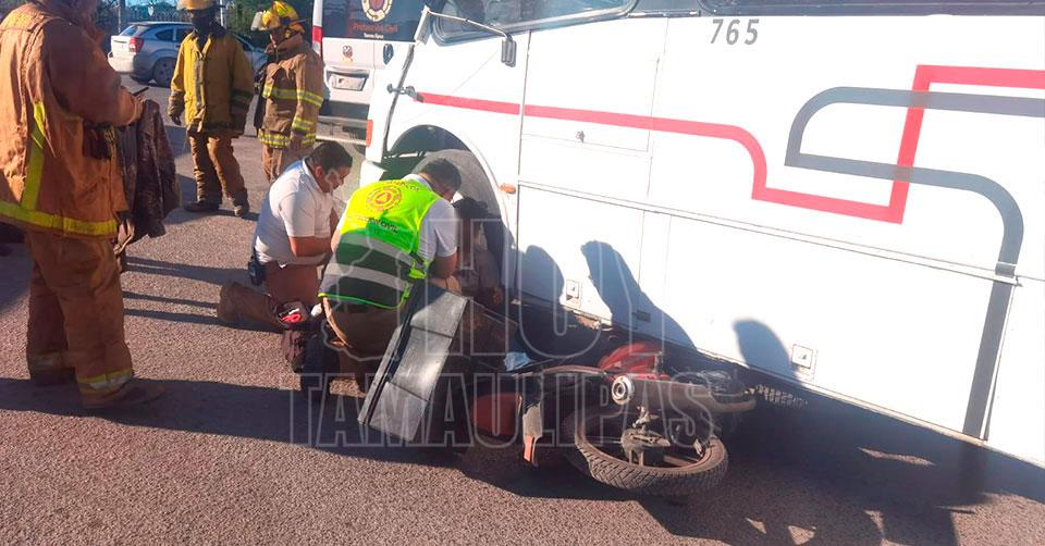 Motociclista lesionado al colisionar con camión en Ciudad Victoria; traía el casco guardado